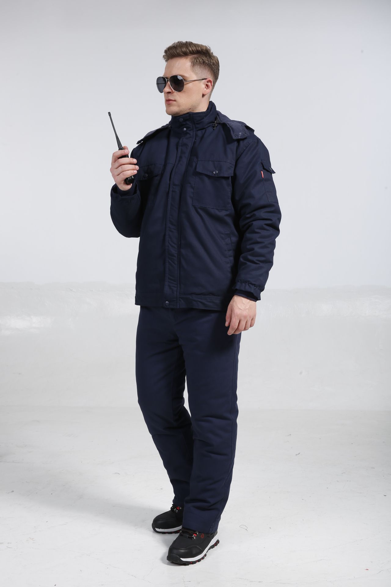 鐵路工人戶外短款棉襖工作服適合行業:秋冬戶外工作者,鐵路工人;面料:表面進行磨毛處理,舒適感佳;款式設計:帽、內膽可拆卸,帶筆袋,便于攜帶對講機、筆等物件,前胸大口袋,下擺二口袋,按扣設計,簡約、時尚。